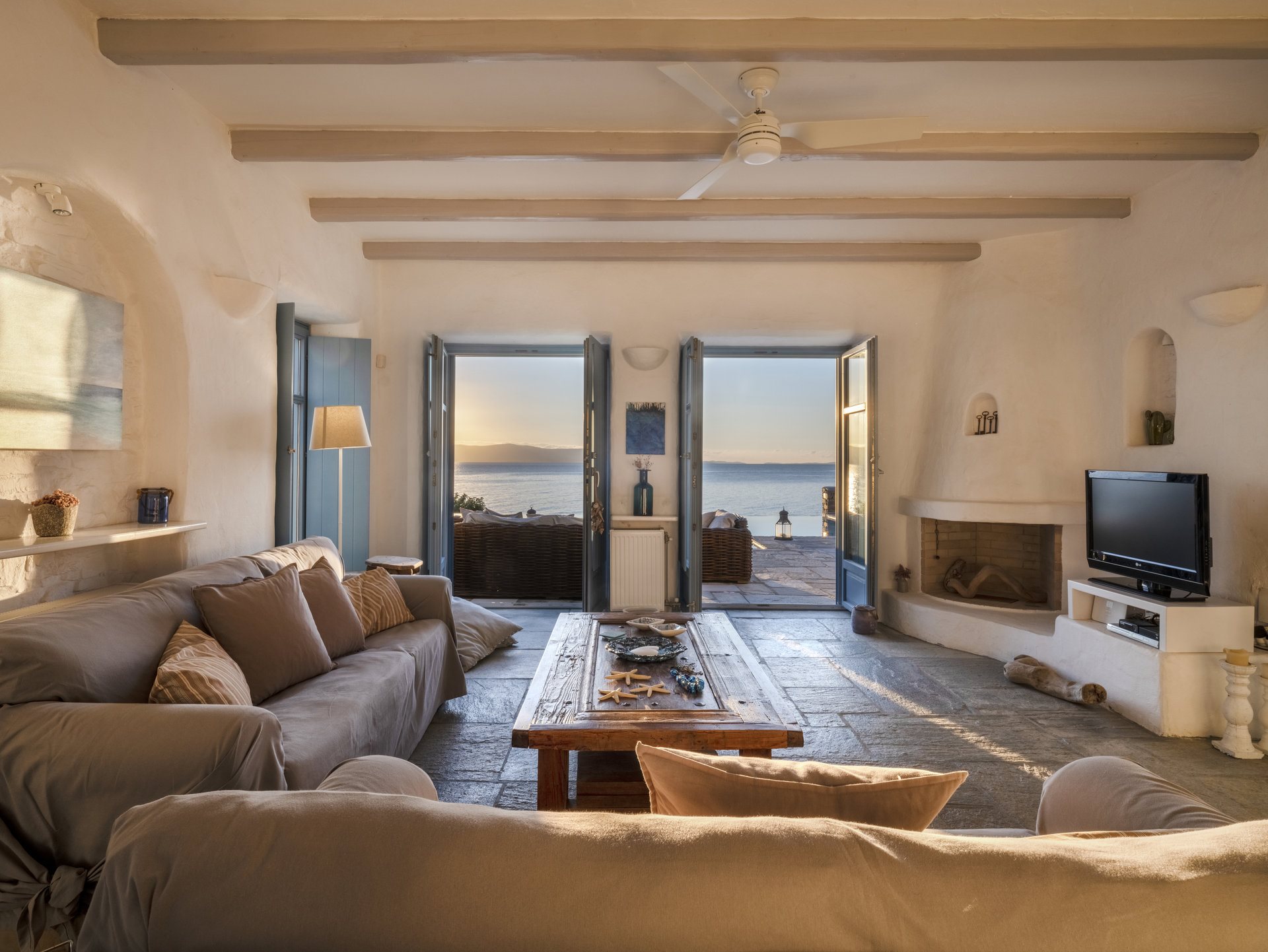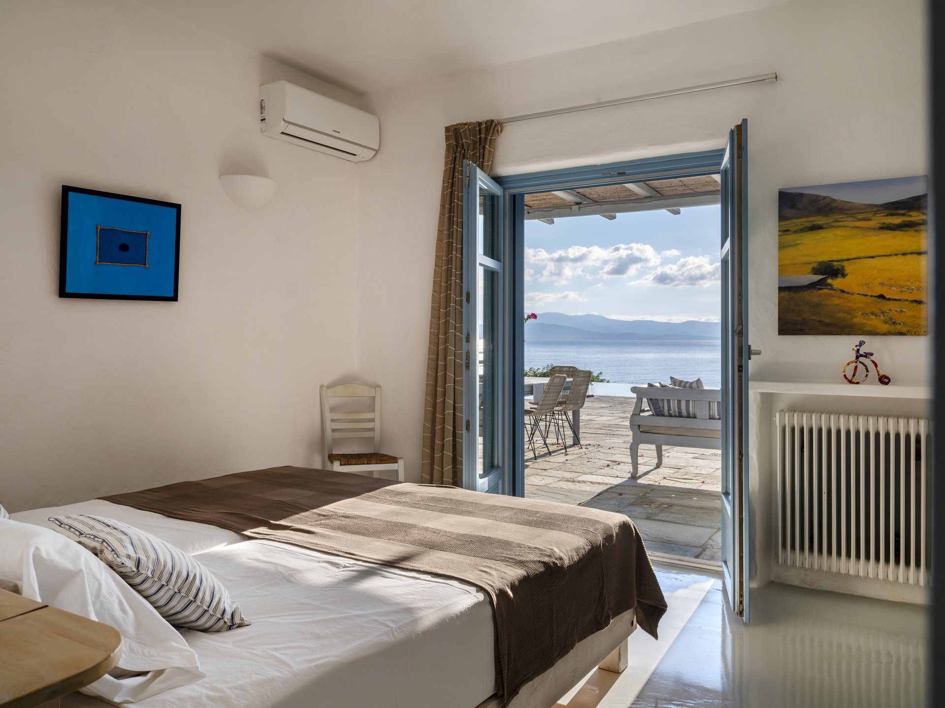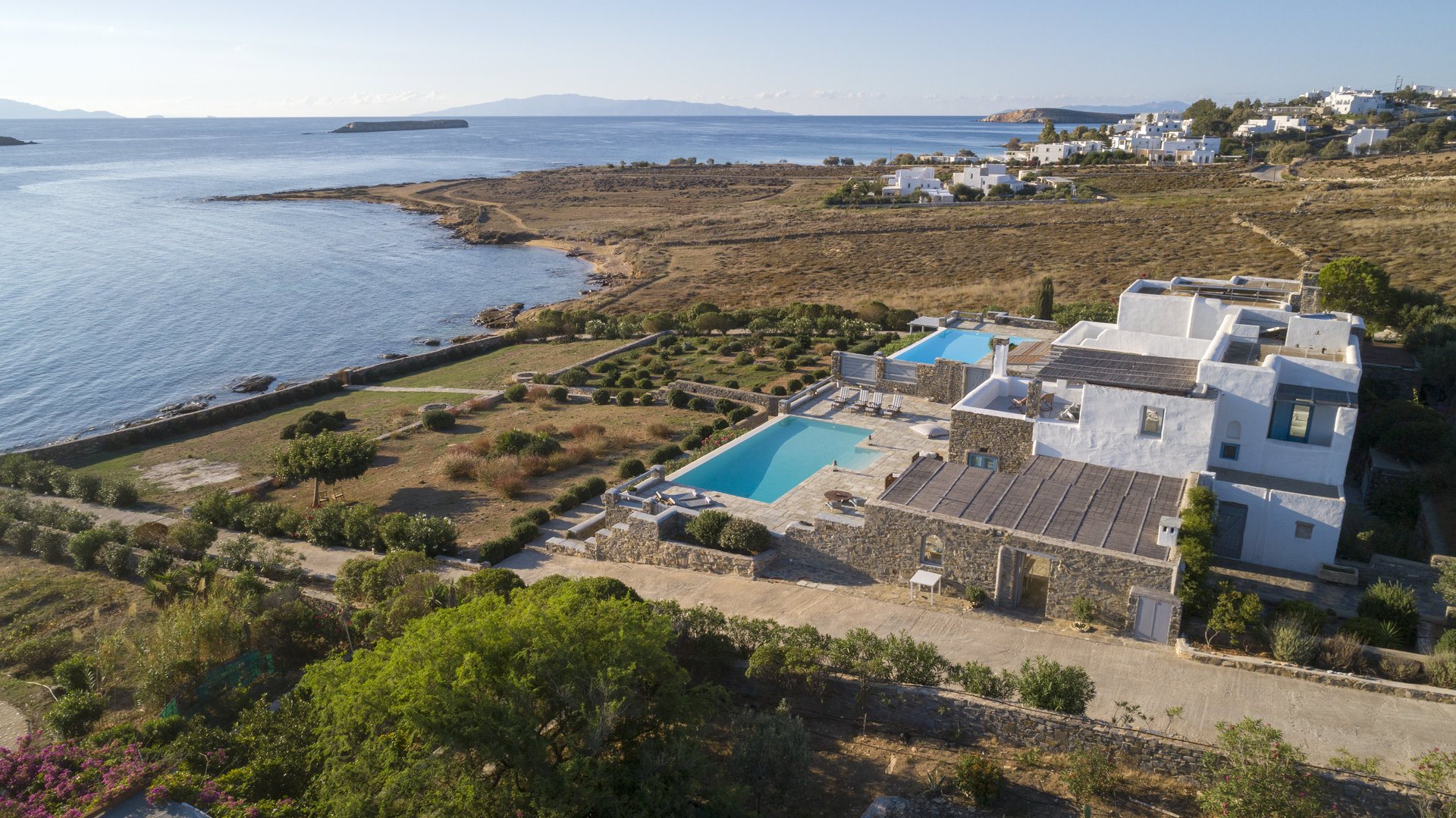 Just a 5-minute walk will take you to New Golden Beach, famous for its blue-flag waters and ideal windsurfing and kitesurfing. Furthermore, Villa Anatolia in Paros allows easy access to the island’s highlights, with picturesque Naoussa village just a 20-minute drive away.