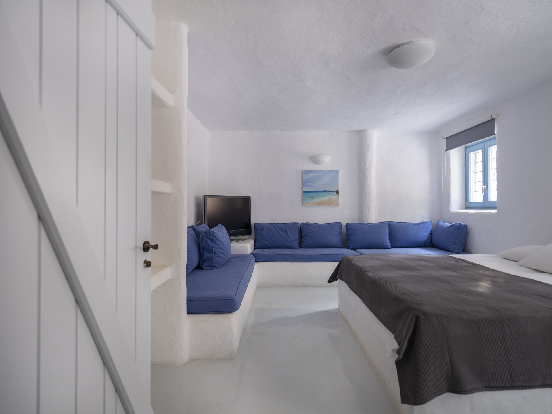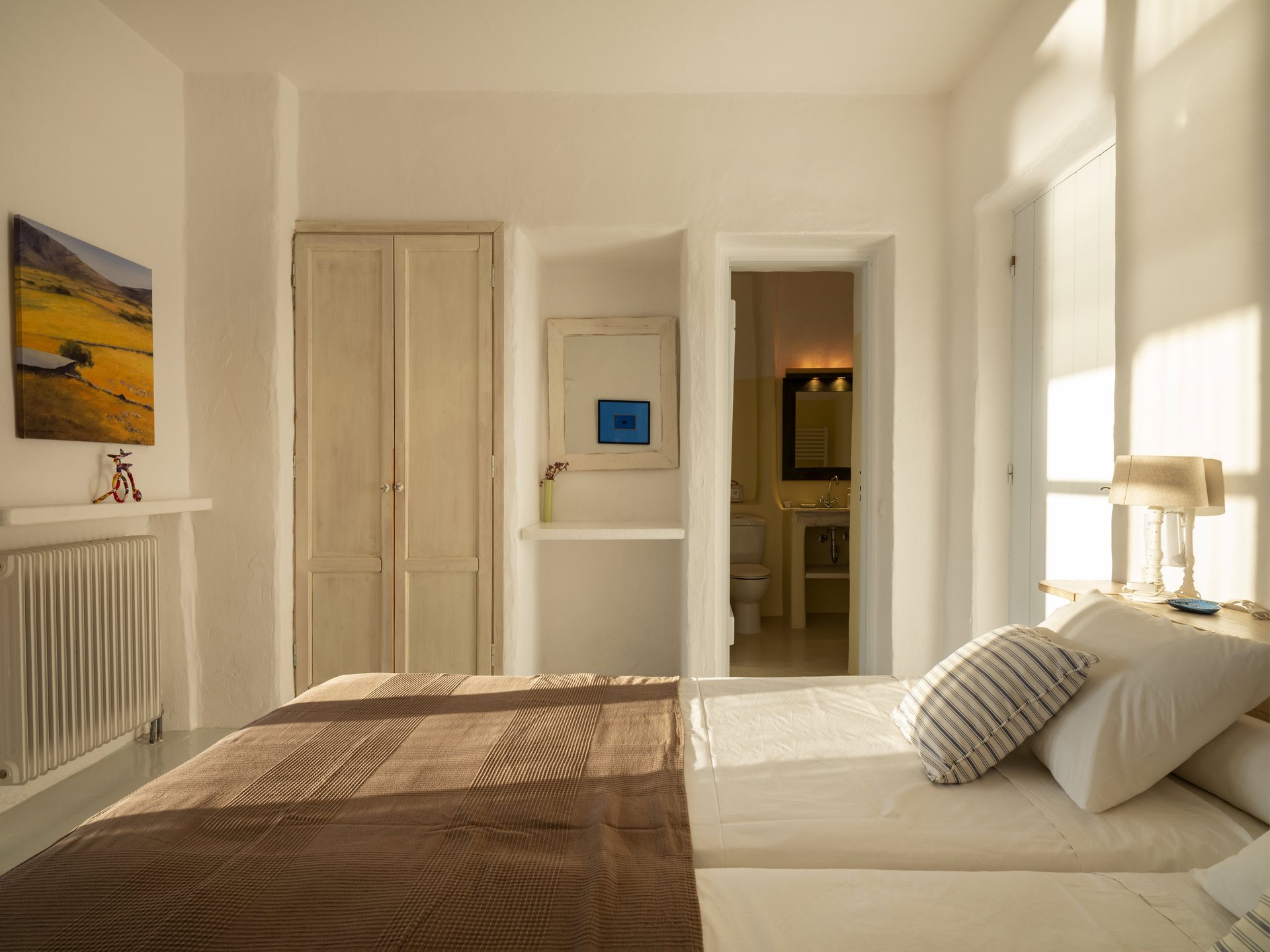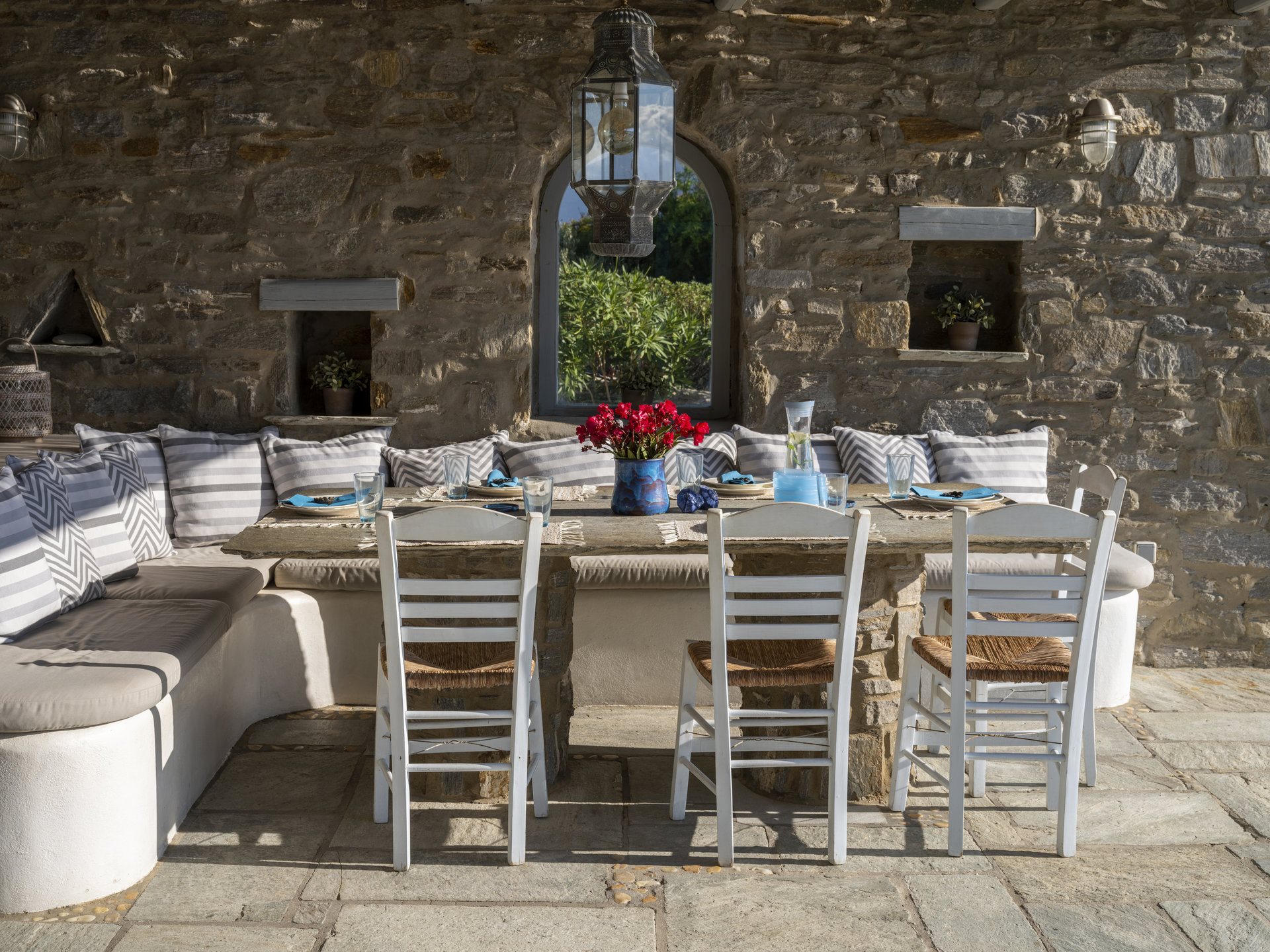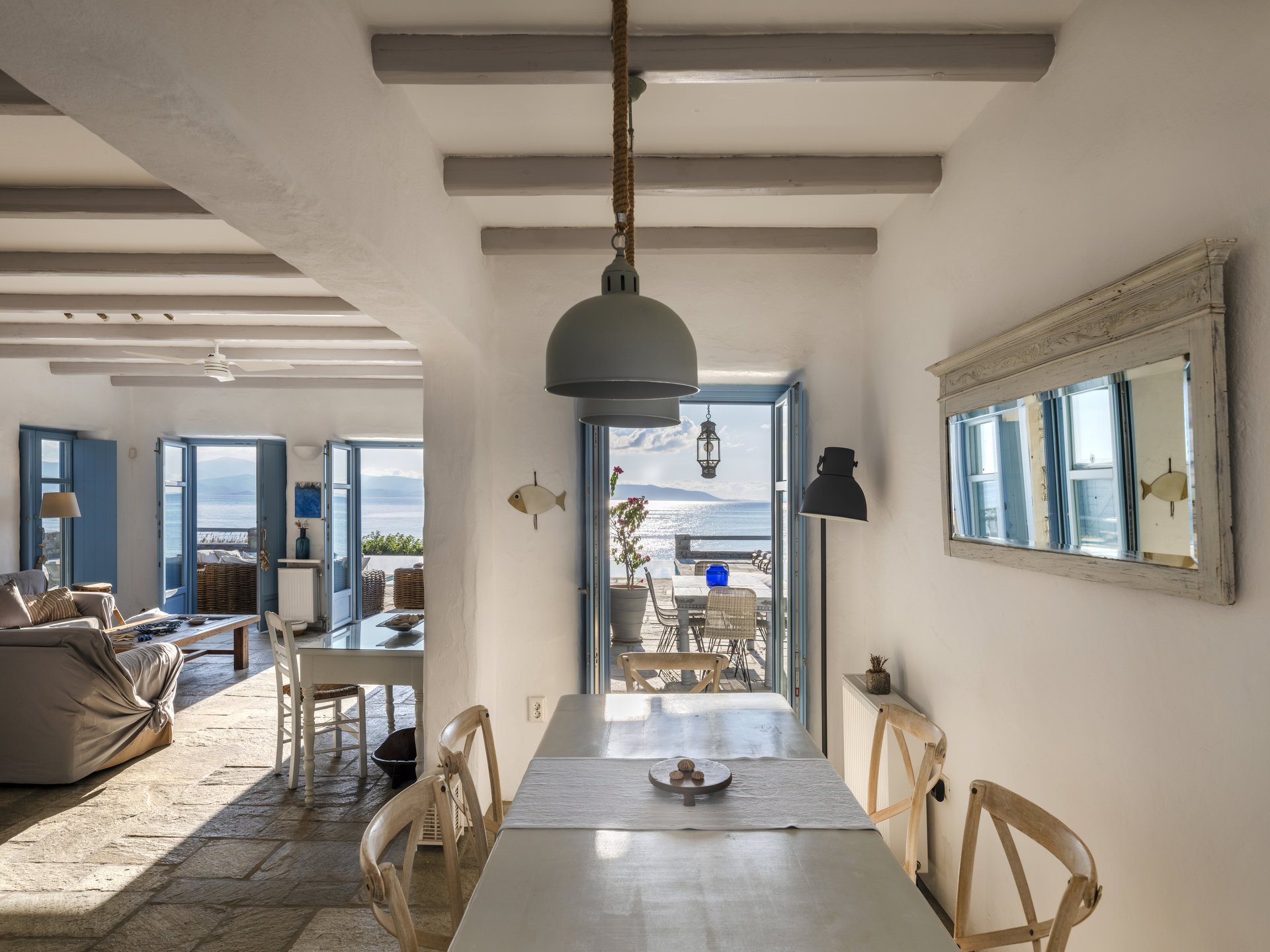 Just a 5-minute walk will take you to New Golden Beach, famous for its blue-flag waters and ideal windsurfing and kitesurfing. Furthermore, Villa Anatolia in Paros allows easy access to the island’s highlights, with picturesque Naoussa village just a 20-minute drive away.