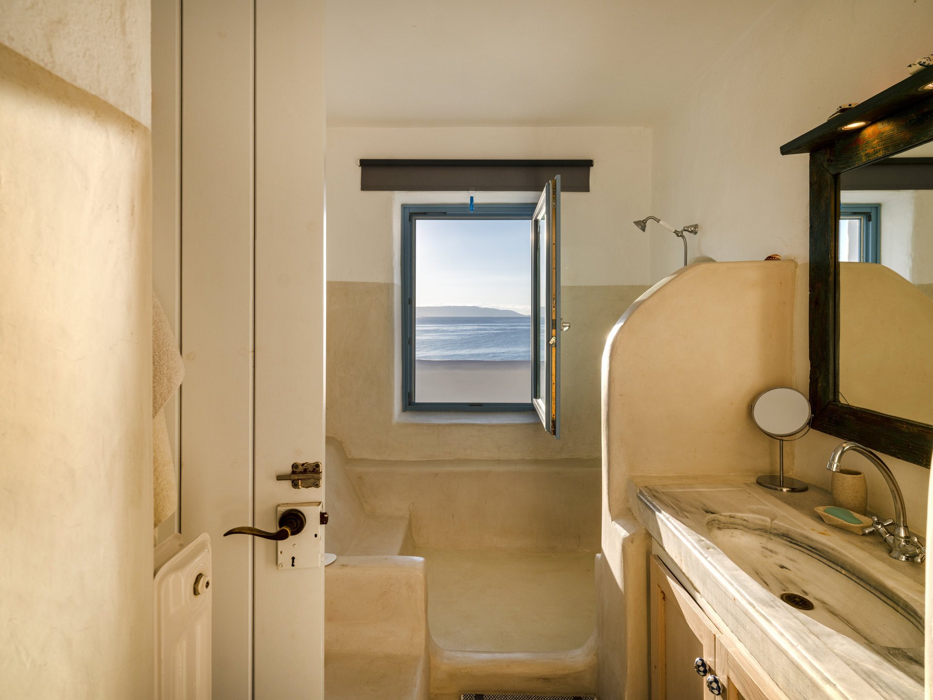 One master bedroom with double bed, en suite bathroom, sea view