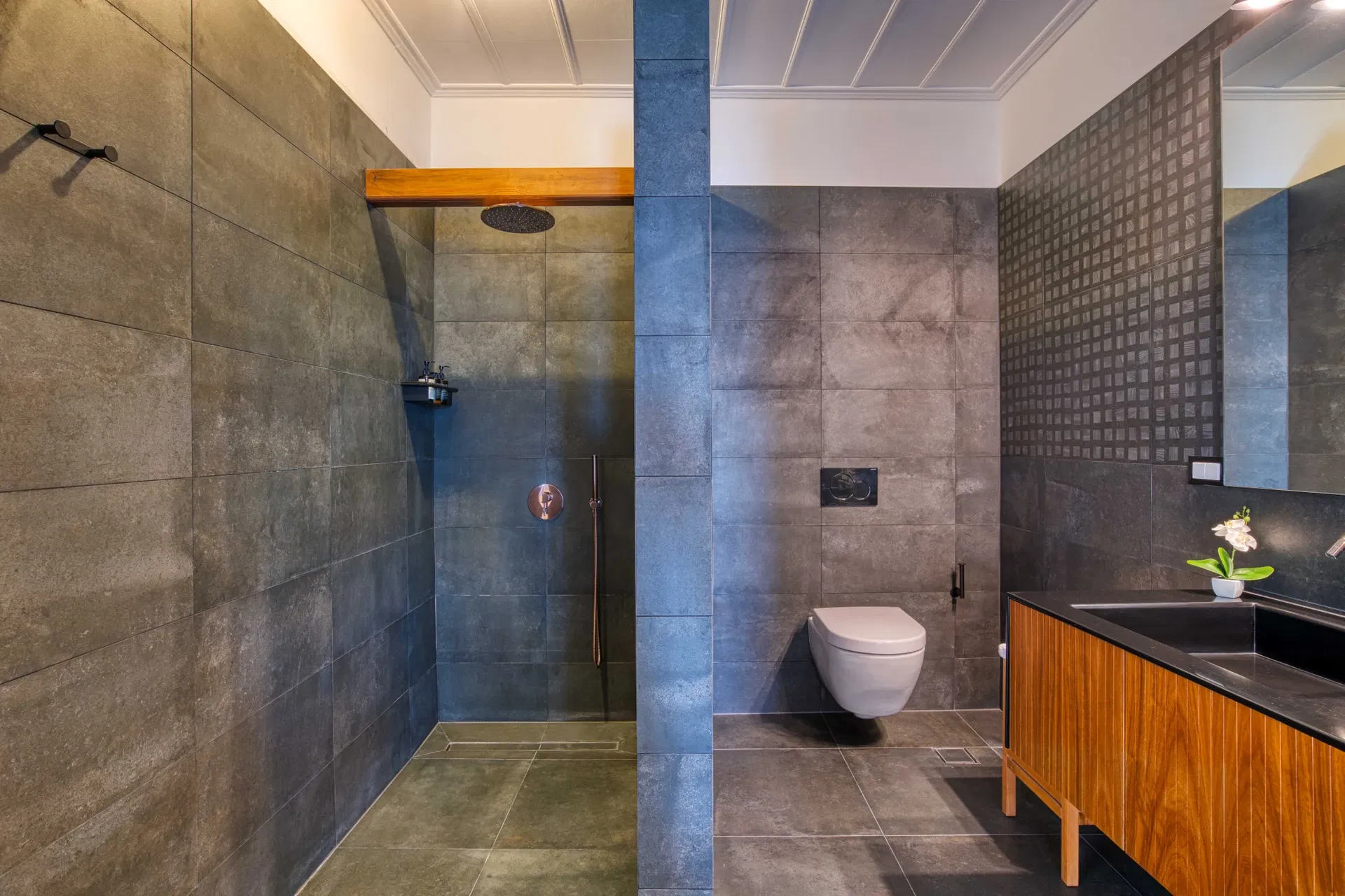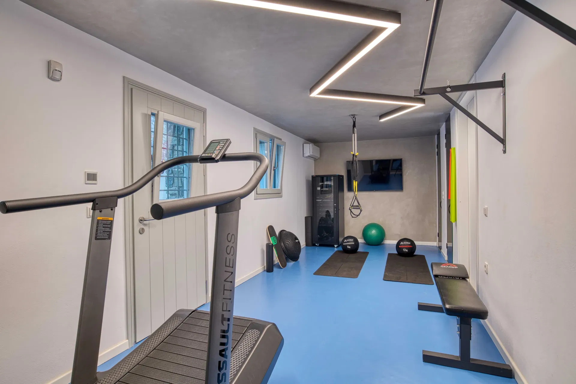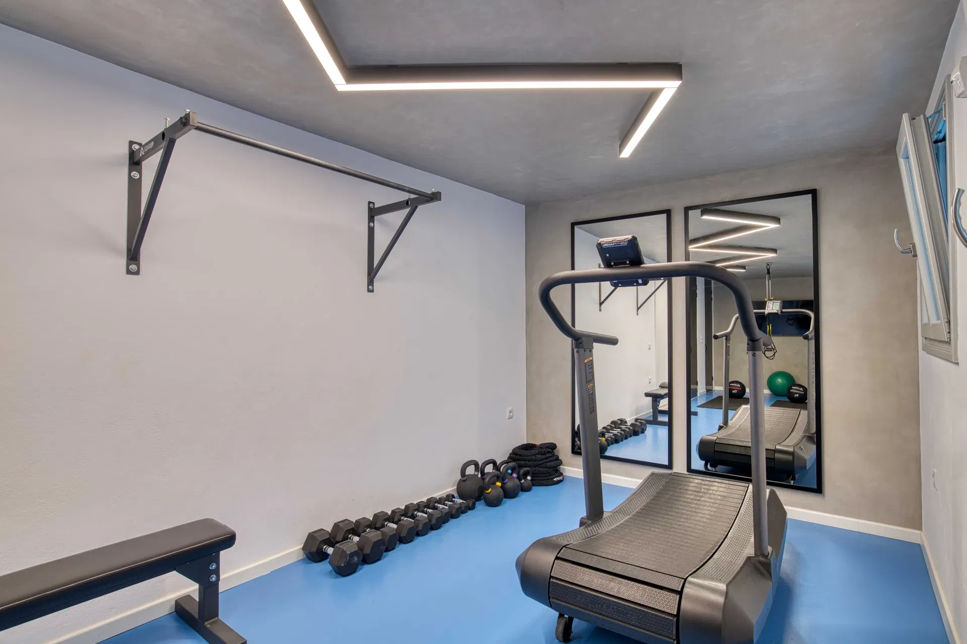Stepping inside, the villa reveals a bright and comfortable layout where indoor and outdoor areas flow naturally into one another. Villa Estelle features five master bedrooms, each offering generous space and privacy, making it well suited for families or groups of friends traveling together. The design emphasizes comfort and functionality, ensuring a relaxed and welcoming atmosphere throughout the home. The interior also includes a fully equipped private gym, allowing guests to keep up with their fitness routine during their stay.