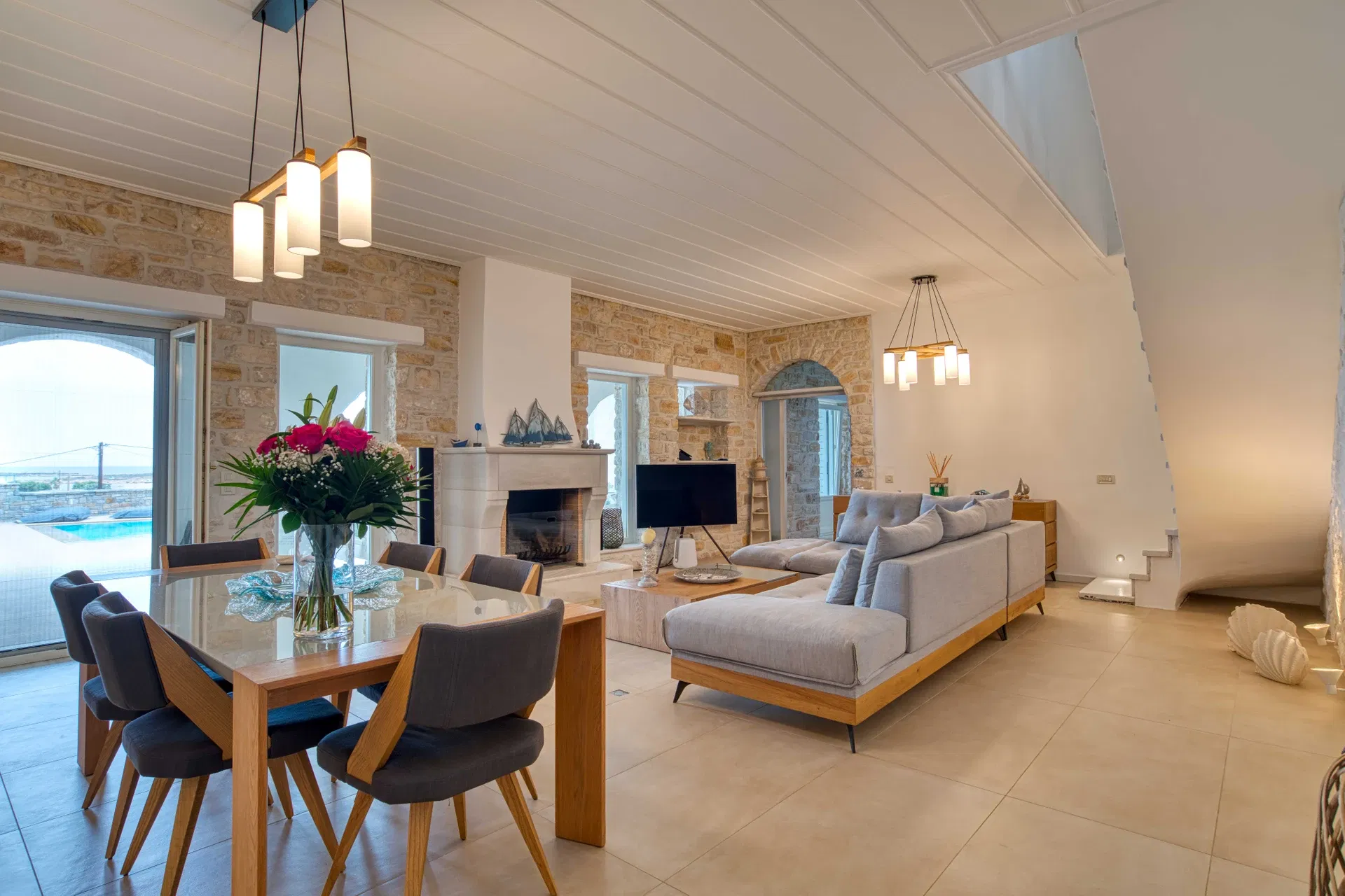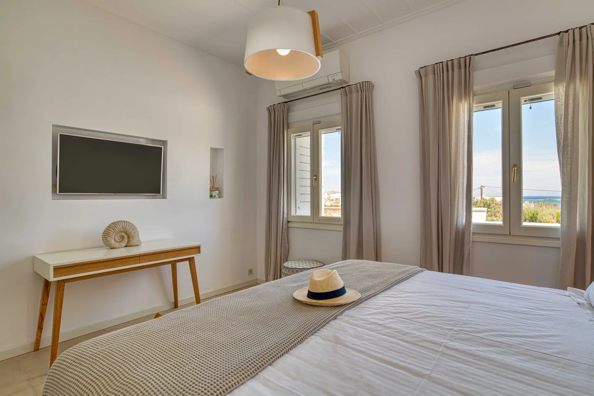 Location is one of Paros Villa Estelle greatest assets: just a few meters from the famous beach Kolympithres and a 5-minute walk from the picturesque Naousa harbor, guests have easy access to top restaurants, bars, and local shops. The island’s main port at Parikia and Paros Airport are also within convenient driving distance. With its combination of elegant design, premium amenities, and a prime location near both the sea and Naousa’s charm, Paros Villa Estelle promises a luxurious and memorable stay in Paros.